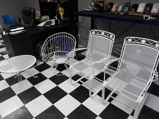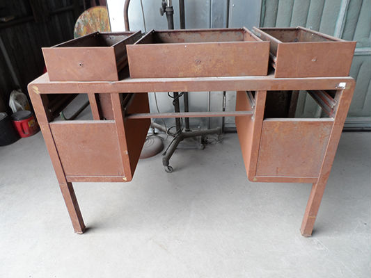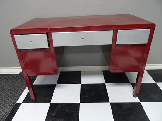 The after. Brought the desk back to life with. Maroon and silver powder.